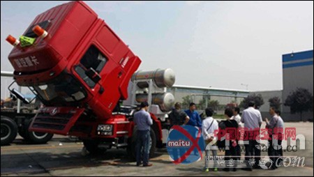 汽车工程研究院的工程师对陕汽天然气重卡进行了详细的介绍,德龙新M3000 LNG牵引车,依托德国MAN技术平台进行了轻量化处理,在保证承载能力的情况下,有效的降低了车身自重,整车经济车速高、动力强、超节省,满足高车速情况下用户对于高性价比车型的需求,高效运输,经济环保。