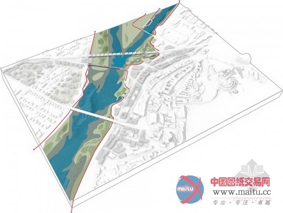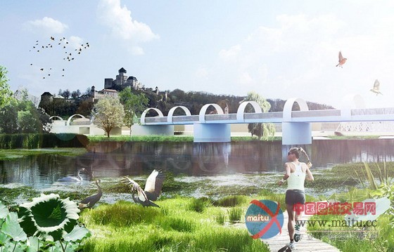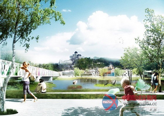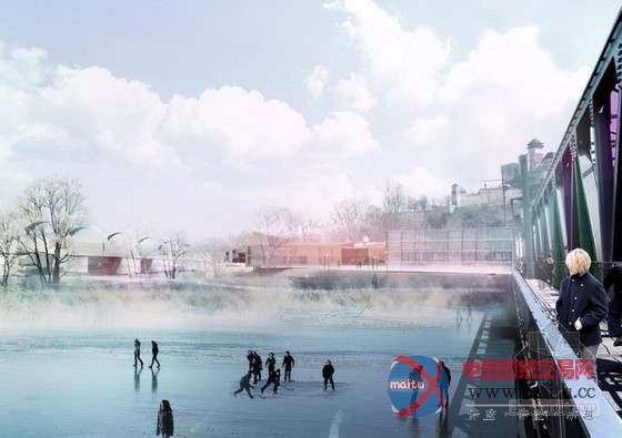 特伦钦是瓦赫河流域的众多城市之一。20世纪30年代,人们开始修建堤坝以保护沿岸居住区的安全,然而美丽的河道风景随之慢慢消逝。 景观设计师对直线型堤坝进行改造,让其边缘变得柔和自然,恢复河流的天然风貌,同时又保留其原有的保护功能。 我们将狭长的堤坝向两边延伸,修建特色广场、街道及河边步道。届时,形成的堤坝新景观会将河流南端和这座历史古城紧密连接起来。南部滨水区形成的 连续的公共休闲娱乐空间将最大化地利用水景的动态效果。 经改造的铁路大桥成为南堤和北端河床景观的纽带,生态中心则是广阔湿地和水流缓冲区的交汇点。在这个系统内还修筑了一个超级堤坝,除了防洪作用外, 该堤坝还新修了房屋、公园,成为瓦赫河和特伦钦市中生动的城市阳台。