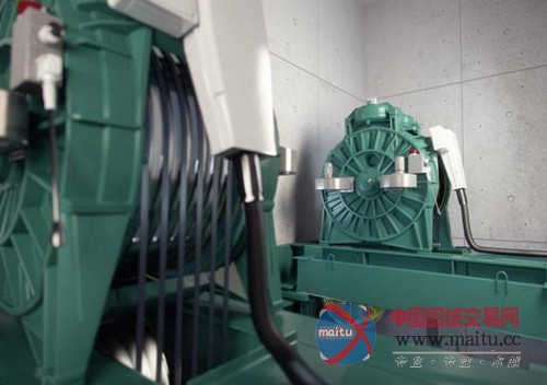 这种电梯绳索的强度与钢索相近,但比钢索更轻,是由4股碳纤维材料制成,外层是环氧树脂涂层,可增大摩擦力和减少滑移。图中是一个电梯滑轮系统。
