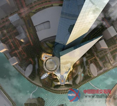 这座摩天大楼共200层,其中160层是住宅区,图中是国王塔的鸟瞰图。