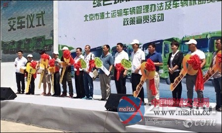 为配合北京市政府实施《北京市大气污染防治条例》和《北京市生活垃圾管理条例》,以及做好城市建筑垃圾、土方、砂石运输等管理工作,中国重汽HOWO和T7M两款符合北京地标的新型城市渣土车亮相大会,中国重汽销售部副总经理厉宏伟等参加此项活动。