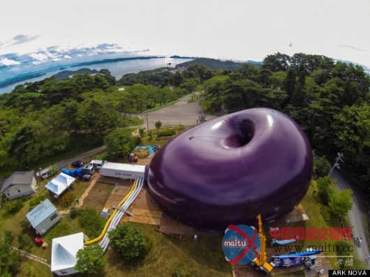 音乐厅从外面看像是个巨大的紫色果冻豆,感觉很华丽。从里面看的话,就像是个彩色的贝壳。实际上,这个球型的音乐厅是世界上第一个充气音乐厅,名为“Ark Nova”。音乐厅由英国著名雕塑家Anish Kapoor和日本建筑师Arata Isozaki联手建造,为的是建立新的旅游景观,因为日本在2011年经历了地震和海啸,需要重振旅游业。该设计十分新奇,很有创意。Kapoor表示,自己很荣幸参与项目的设计,音乐厅可以服务社区,满足大家欣赏音乐的需求,因为音乐可以给人慰藉,陶冶情操。