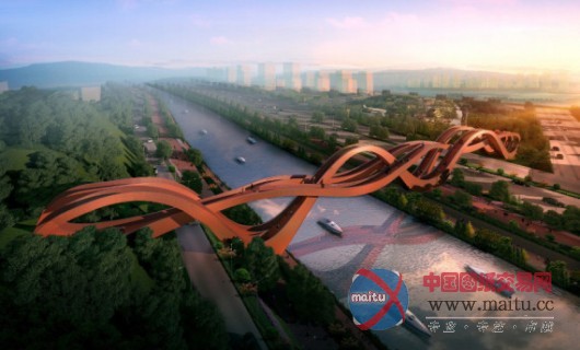 这座大桥采用波浪起伏的设计,蔚为壮观,相当于一座人行天桥,横跨龙王港河之上。大桥由NEXT Architects事务所设计,共有三个起伏的桥面,非常新颖,位于风景如画的长沙市。这座大桥和该地区一座新建的公园曾获得去年国际建筑比赛的大奖。目前,大桥还在施工。Michel Schreinemachers在事务所网站上表示,大桥起伏的设计源于莫比乌斯环。John van de Water又做了补充,他表示大桥象征着中国结,中国结是一种古老的中国民间艺术。