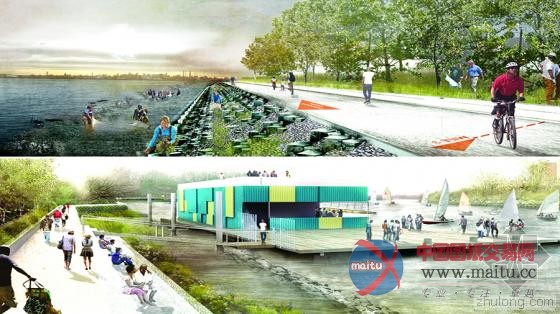 OMA团队和Royal HaskoningDHV工程咨询公司合作,为新泽西州的霍博肯设计了名为“抵御、延迟、储存、释放”的重建方案。重建重要的基础设施,保护沿海地区和整个市区。该项目与获得了2.3亿美元的高额奖金。