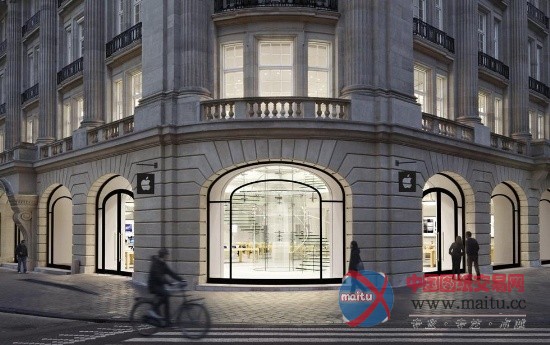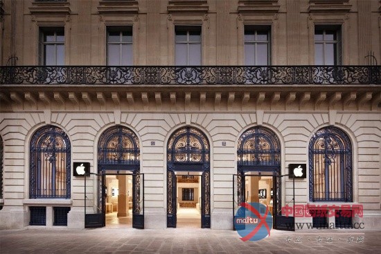 2010年,苹果在法国巴黎知名的Opéra广场开了一家新零售店,这家门店的前身是一家拥有134年历史的银行。在装修时,苹果尽可能的保留了这座由大理石和石灰石构成的建筑原貌,甚至还不惜花费大量时间擦洗旧银行留下的烟熏痕迹。