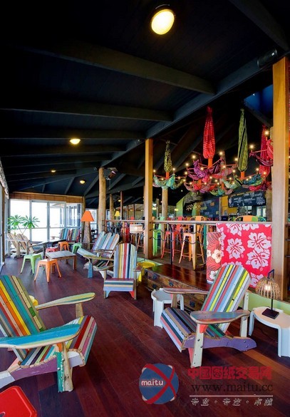 该项目的设计目的也是将一个零散的没有特点空间转变为一个欢快的家庭式酒吧,使之与它所处的场地环境相融合。酒吧设计之初就力求表现其视觉效果,以呈现出西澳大利亚现有的“克兰西鱼酒吧”鲜活和休闲的气氛。