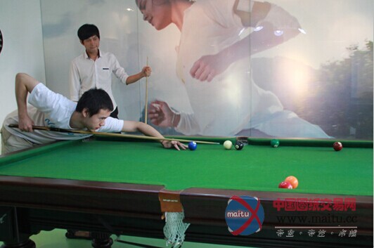 在麦田景观台球厅,亲属们发起了一场小型的台球PK。