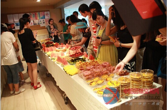 来到麦田景观咖啡厅,看到满桌精心准备的茶点水果,大家都忍不住拿出手机,拍下这甜蜜的瞬间。