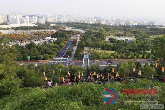 公园位于首尔上岩洞,上世纪70-90年代,这里曾是首尔最贫瘠的地方,一度是首尔最大的生活垃圾填埋场,原本地势低洼,曾种植过花生和玉米,集中了近9200吨的生活垃圾,形成了一座规模相当于埃及金字塔33倍的"垃圾山"。1994年,首尔市政府决定将世界杯足球赛的场馆建在上岩洞,同时对垃圾场进行生态改造。首尔政府希望通过设计,将一个贫瘠,遗忘的地区改建成为一个可以创造经济奇迹的地方,并实现人与自然的和谐相处。