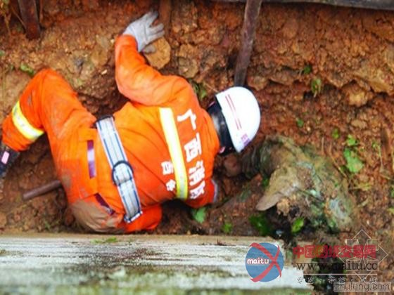 据隆林消防大队官兵介绍,他们是当天中午12时左右才接到的报警,距离事发时间过去了4个小时。下午2时许,他们赶到乡下,泥土已经差不多掩盖到了楼房后墙的玻璃窗户。伴随着持续的下雨天气,不时发生泥土下滑现象。由于该楼房的后院狭窄,只容得下一两个人,无法使用大型挖掘机,还不可以多人同时实施挖掘,只能靠官兵轮流用铁锹、锄头将泥巴刨开。