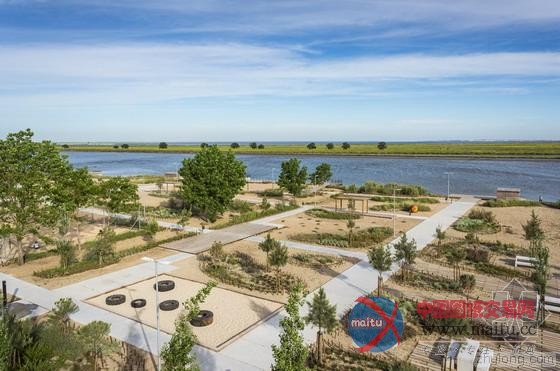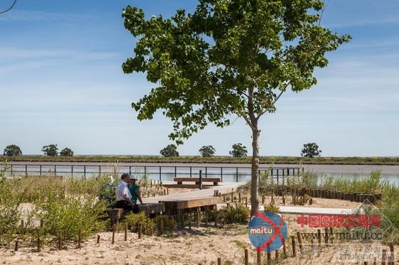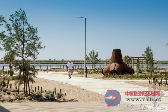 塔霍滨河带状公园由两部分组成:位于沙滩海畔的独立多功能区“垂钓海滩”(PRAIA DOS PESCADORES),以及与泥土路、海岸(溪流和排水渠)相连、源自城区和自然区,最终汇聚至垂钓海滩的的6km长人形步道。葡萄牙塔霍滨河带状公园项目由Topiaris事务所设计。