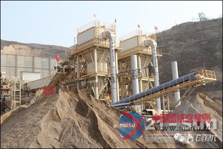 筛分机:当原料含泥土量偏高的时候,在第一道破碎之前,将原料进行筛分。使用大振幅的筛分机,筛分效率每小时500吨,可以将规格在700mm以下的原料当中的泥土剥离开来。同时将细料筛分出来,这一部分不必进入颚破。如此便可以提高破碎效率,又可以减少破碎后的成品料的含泥量。这样一来,机制砂的含泥量便能得到很好的控制。