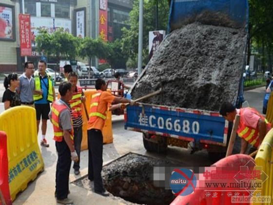 最后,工作人员在这里挖出一个宽0.5米、长1米、深1米的坑,然后用混泥土填灌,“这样可以增强路面强度。”