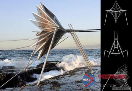 这几座长着“细腿”的“怪物”看上去就像是电影《世界大战》中入侵地球的外星机器人,但实际上这些设施可没有那么可怕。这些具有科幻外形的设施是设计用于帮助黎巴嫩贝鲁特的居民们利用海滩的项目内容,它们将可以被用于采集电力。