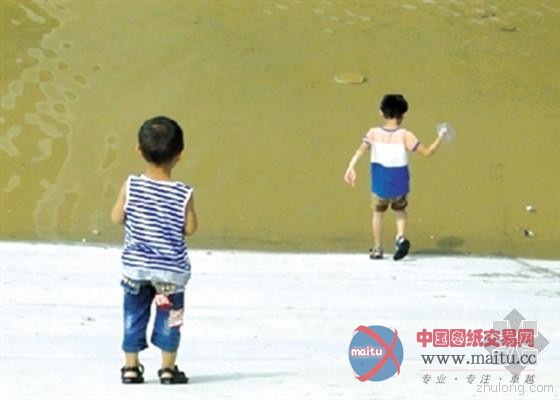 水边玩耍的小孩