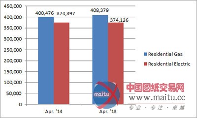 4月份,美国家用燃气热水器销量为400,476台,比去年同期的408,379台下跌了1.9%。家用电热水器的销量为374,397台,比去年同期的374,126台增长了0.1%