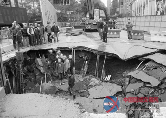 南京闹市高楼旁地陷10平米大坑-筑龙新闻