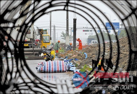 杭州湾跨海大桥杭甬高速连接线公路工程(余夫公路至小曹娥互通段)已全面开工建设。昨天上午,笔者来到位于余姚市境内的兰曹大道,只见中央隔离带两旁已竖立起长长的交通围挡,挖掘机、钻机、吊机等各种机械设备正在进行施工作业,一派繁忙景象。