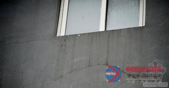 施工方为了防止渗水,在外墙裂缝处涂了一条条白色防水涂料,由于裂缝处多,白色涂料布满外墙,被戏称为“绷带楼”。