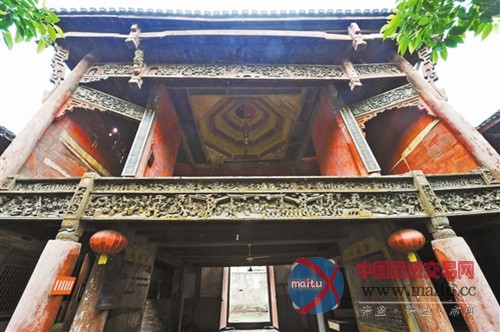 在古戏台的横栏上密密麻麻地刻满了金黄色的镂空浮雕,虽有不少破损,但依然能看出技艺的精湛。“和一般浮雕不同,这些浮雕采用了‘深雕’的技艺,其所刻纹路也并非简单的人物,而是由一个个《三国志》的故事拼接而成。”罗毅一边说,一边从中为记者寻找“关云长单刀赴会”、“孔明智施空城计”的画面。