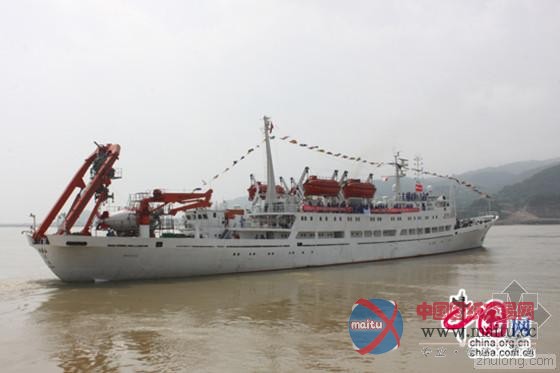 继“蛟龙”号2013年试验性应用航次完美收官后,“蛟龙”号于7月4日上午再次在母船“向阳红09”船的搭载下开赴西北太平洋中国大洋协会富钴结壳勘探区开展下潜及常规调查作业。国家海洋局局长刘赐贵和其他相关领导参加了“蛟龙”号出征的欢送仪式。
