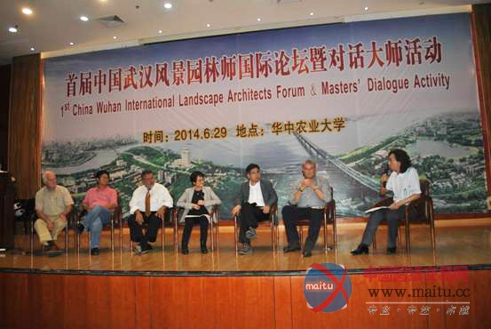 讲座结束后,库曼先生、Stephen Bennett先生、爱德华教授、李建伟先生、陈弘志先生与国际园林博览会武汉筹备工作指挥部规划设计部副部长、武汉市园林建筑规划设计院杨念东副院长共同参与了大师对话交流活动。对话活动由王小璘主席主持,专家们就造园艺术、城市建设理念、以及风景园林师在宜居城市、生态城市中应该如何发挥作用等话题进行了热烈的讨论。