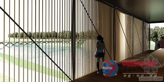 天然茶室:简洁又富有中国特色的构筑物,丰富了整景观空间,也成为整个流线的高潮部分。室内与室外的概念被模糊。轻盈的结构既继承了中国古建对结构的重视,有反映了时代特点。