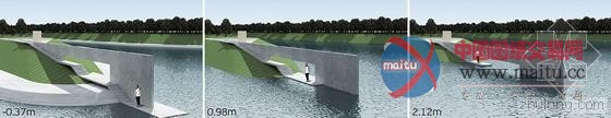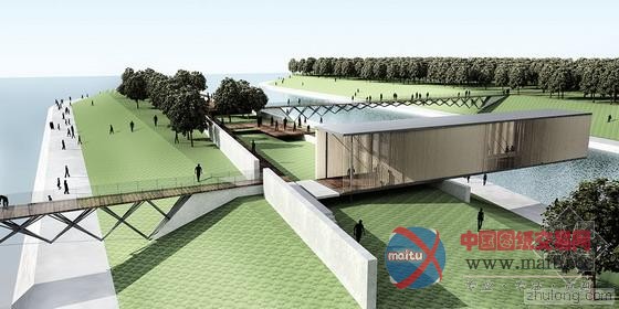 滨水平台:满足人们对水亲近的欲望。考虑到潮汐的变化,为人们提供不同标高的滨水平台。