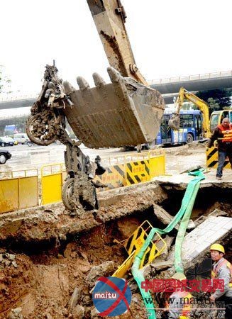 记者看到,现场两部抽水机抽着水时,人行道一边的路面还在一直地坍塌。电力施工人员说,因为地下水一向往上冲,导致早上已产生2~3次路面坍塌,放在施工地周围的“电力施工”、“市政施工”等铁块安然标记都掉落进坑里。事发时,施工人员在人行道上由东往西举行开挖功课,突然水管爆裂,水流冲出。