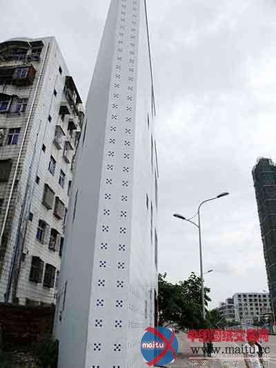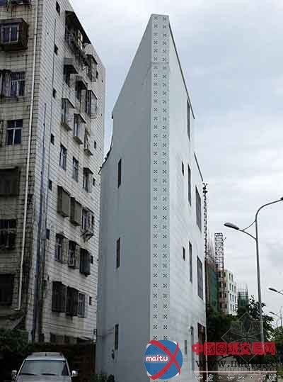 2010年5月23日,海口,一栋显现“梯形”修建布局的四层楼房在马路边,修建面积仅40平方米摆布。 据领会,这栋楼的主人是在国度修建途径所征用的地盘后,用剩下的“梯形”方块地盘修建而成的。