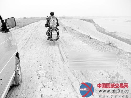 村夷易近骑着摩托车在坑坑洼洼中艰巨前行