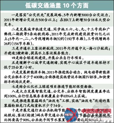 一是落实“公交优先”发展计谋。5年内新增3000台公交运力,2011年新增公交运力500台以上;在BRT上新增30台18米大年夜型公交车。