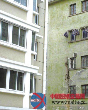 经由过程和边上一幢正常老居夷易近楼比拟,17号楼明显倾斜