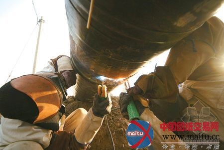 12月9日,施工人员正在西气东输南通一标段2工区举行管道焊接展设。