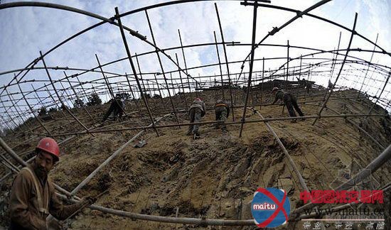 11月24日,施工人员在湖北省秭回县长江沿线举行高切坡管理。