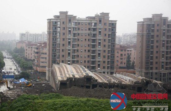 上海倒塌楼盘质量遭质疑 业主现场喊退房