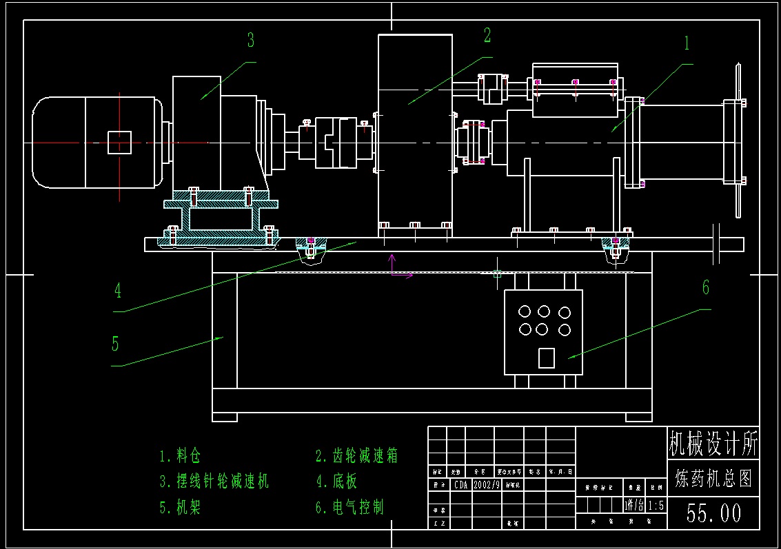 本机由机架、底板、摆线针轮减速机、齿轮减速箱、料仓等主要部分组成。