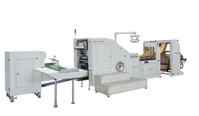 本机主要用于以卷筒纸和卷筒式贴片为原料,制作派奇手提纸袋。该机器能够一次同步完成卷筒纸放卷、贴片、成纸筒、冲孔成把、切断和袋底成形等一系列复杂步骤,有效地节省人工成本。光电眼自动修正切断长度,有效保证机器的切断精度。配备了先进的西门子PLC系统,使得整机能够快速稳定地运行。特别设计的收袋平台和计数功能,有效提高了用户批量打包的效率。本机制袋尺寸范围广,制袋速度快,特别适用于食品和服装等行业的纸袋批量生产