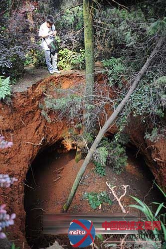 (长沙)烈士公园呈现一个秘密“天坑”,潇湘晨报报导后,7日很多旅客特意跑进小树林,不雅看这一“奇景”。