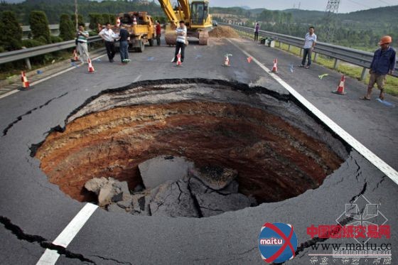 2010年6月4日,浙江衢州,高速公路呈现大年夜圆巨坑。>>详细