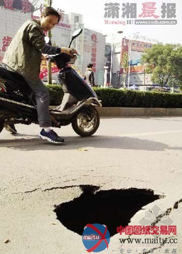 昨日上午,湘潭市扶植路口步步高摩尔城与莲城步行街周围劈面的非灵活车道上,很多市夷易近在围不雅一个“黑洞”。一市夷易近疑惑地奉告记者,非灵活车道上,既无大年夜型货车颠末碾压,更无施工等启事,莫名其妙地呈现了如许的黑洞,令人狐疑。