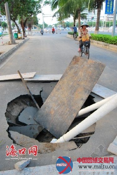 海口网11月22日消息 (记者谢大年夜强) 21日下战书4点多,在海甸岛人夷易近大年夜道市人夷易近病院劈面的非灵活车途径面,突然塌陷呈现一个大年夜坑。周围的居夷易近称,路面塌陷大概跟不久前一家单位举行地下排污管道施工有关。