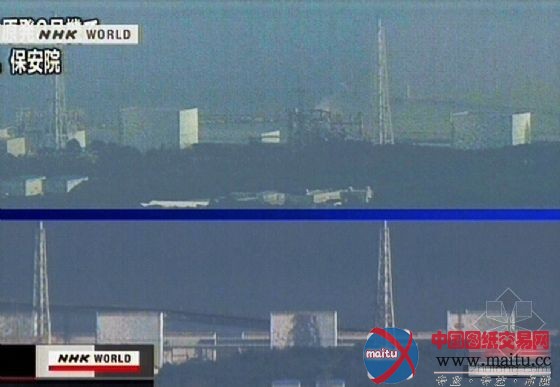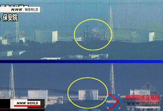 3月14日,日本东京电力公司福岛第一核电站3号机组本地时候上午11点过后产生氢气爆炸。NHK电视台画面表现福岛第一核电站爆炸前(下)后(上)对比图。