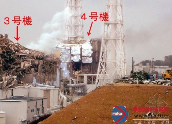 本地时候2011年3月16日,日本东京电力公司宣布的图片,受损的福岛第一核电站3号(左)与4号反应堆。