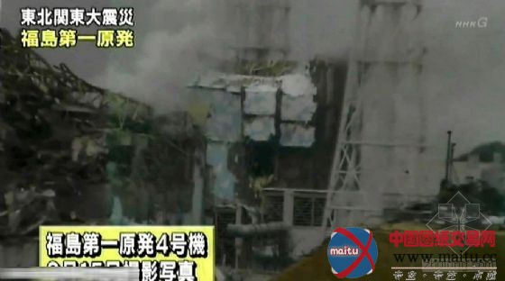 截屏图:本地时候2011年3月16日消息,NHK电视台展现15日4号机组爆炸后的高清画面。
