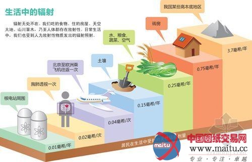人类有史以来一向受着天然电离辐射源的照耀,包含宇宙射线、地球放射性核素产生的辐射等。人类所遭到的团体辐射剂量首要来自天然本底辐射和医疗。