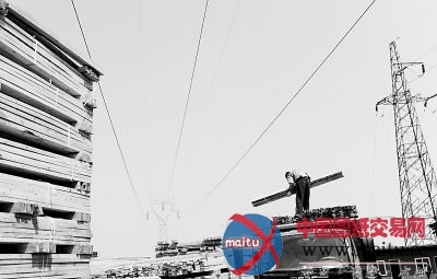 右图:木料加工厂建在高压线下方,存在安然隐患。