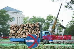 昨日,北大年夜百年讲堂南侧,十余棵杨树遭砍伐。门生们觉得,大年夜部门被伐树木罕见十年汗青,砍了很惋惜,校方应将其迁徙。对此,现场工人和黉舍保安流露表现,该步履获得园林部门的允许,因为树木太重,只好砍倒后分块拉走。昨晚,市园林绿化局信访办流露表现,北大年夜砍树方未向园林部门上报。