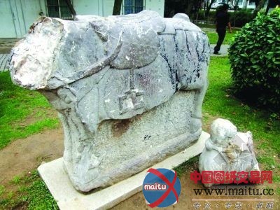 南京公园明代青石马头部断裂无人管