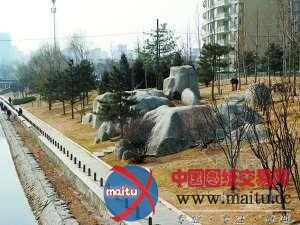 向阳公园桥西侧街头公园内的人工假山被破坏的征象。克日再次来到这里看到,本来假山被破坏的部门已用铁丝网、水泥等材料举行了修复,假山景不雅规复了原状。
